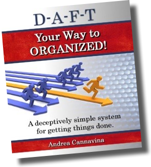 Why you want this bookAs business owners and professionals we are asked to process much more information every day, but while the ways business gets done have changed, the laws of nature have not and a day still has only 24 hours! Enter D-A-F-T™ the deceptively simple system for getting business done. Read through this book and get a very powerful but simple tool to use to organize, file and find things, including things in and attached to email. Goes far beyond creating folders and rules - creates a system that you easily put to work for you. Learn to manage and process the hundreds, if not thousands, of emails you receive each week. Stop putting out fires and wasting time looking for [_________] <-emails, receipts, papers, appointments, names, numbers (you get the idea)~ Learn to control your workday in addition to your inbox. Putting D-A-F-T™ in place not only tackles an overloaded inbox but also a disorganized calendar. A must have tool for those with far too much to do an not enough time to get things done. The Book is Set Up for Self-StudyIt's a quick read (on purpose). Purchase your copy, take 20 minutes to read through it and put in place the suggested process to see if it doesn't help you ... the way D-A-F-T™ has helped countless other over-worked, stressed-out professionals!